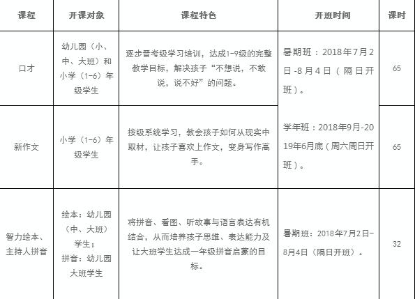 為滿足熱切希望加入到“廣電小記者小主播團”學(xué)習(xí)實踐的廣大學(xué)生的需求,泰興廣電精心開設(shè)“關(guān)鍵期口才·小主播”、“新作文·小記者”、“主持人啟蒙拼音”、“智力繪本”特色培訓(xùn)班。 現(xiàn)火熱面向全市小學(xué)、幼兒園擇優(yōu)招錄少量暑期班和學(xué)年班學(xué)員: 暑期和學(xué)年班開班時間科目及招生對象 特別說明: |