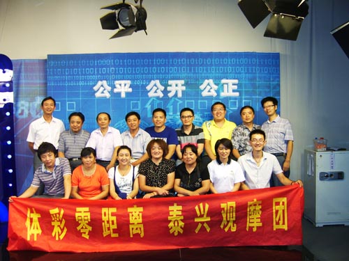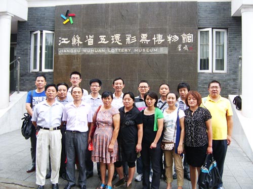 體彩零距離泰興觀摩團 這天下午3時40分,由彩民和體彩業(yè)主等20人組成的“體彩零距離泰興觀摩團”抵達省城南京,首先冒雨來到全國首家彩票博物館——江蘇省五環(huán)彩票博物館參觀。該館集彩票陳列、展覽、集藏于一體,總面積922平方米,通過觀看即開型彩票和電腦有紙彩票的發(fā)展過程和很多實物展覽,使大家對中國體育彩票發(fā)展歷史和體育彩票支持國家建設(shè)有了全面的認(rèn)識。 當(dāng)晚8時,在省體彩中心工作人員引領(lǐng)下,經(jīng)過嚴(yán)格安檢,并將包裹以及所有手機、照相機等電子產(chǎn)品和硬幣等金屬制品寄存之后,大家穿過3道安全門,來到位于江蘇教育電視臺的體彩開獎直播間。迎面的墻壁上有“中國體育彩票”幾個大字。在大字下方,一個齊人高的木匣子矗立著,工作人員解惑說,這個木匣子是搖獎機的保護罩,F(xiàn)場還有一只貼有封條的保險箱,里面放有開獎用的號球。