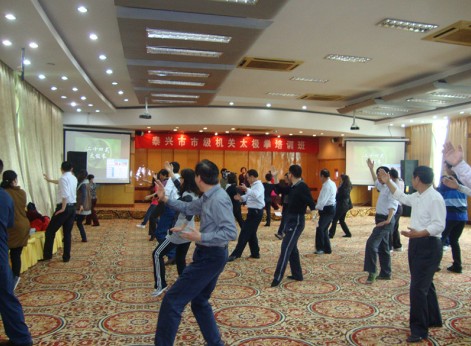 (包萍 李力 報(bào)道)2012年4月24日至25日,泰興體育局會同泰興機(jī)關(guān)工委舉辦了為期兩天的太極拳培訓(xùn)班,來自泰興市直機(jī)關(guān)、企事業(yè)單位和鄉(xiāng)鎮(zhèn)的50多名干部職工參加了培訓(xùn)。 此次培訓(xùn)是泰興市體育局開展“健身指導(dǎo)機(jī)關(guān)行”系列活動的開端,旨在進(jìn)一步弘揚(yáng)民族傳統(tǒng)文化,促進(jìn)我市機(jī)關(guān)干部職工積極參與全民健身運(yùn)動,不斷提高廣大干部職工的身體素質(zhì),營造科學(xué)健身的良好氛圍,推進(jìn)健康機(jī)關(guān)建設(shè)。 培訓(xùn)結(jié)束后,受訓(xùn)學(xué)員作了匯報(bào)表演,并對優(yōu)秀學(xué)員進(jìn)行了表彰。 |