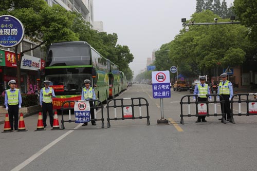 高考首日,泰興交警堅(jiān)守崗位維護(hù)考場周邊交通秩序