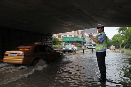 張繼軍 黃新麗 7月2至6日泰興連續(xù)強降雨,僅3日一天的降雨量就達100mm,泰興市范圍內(nèi)主次干道因此出現(xiàn)了大面積積水現(xiàn)象,給過往車輛、行人帶來了諸多交通安全隱患。風(fēng)雨面前,泰興交警選擇了勇敢堅守。