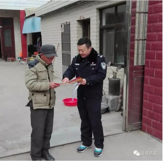 經(jīng)偵大隊(duì)民警錢錦良向群眾發(fā)放黨群連心卡