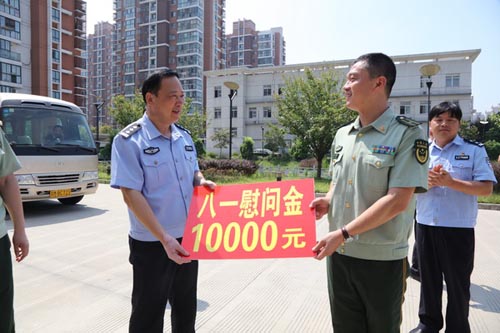 李雙山同志向武警中隊送上八一慰問金 7月28日上午,副市長、局黨委書記、局長李雙山率在家的局班子成員,先后到消防大隊、武警中隊,看望慰問堅守在高溫酷暑一線的消防、武警官兵,向他們表示親切慰問,致以節(jié)日的祝賀并送上了慰問金,對消防、武警官兵忠實履行職責,切實維護人民群眾生命財產(chǎn)安全作出的貢獻給予充分肯定,希望繼續(xù)發(fā)揚特別能吃苦、特別能戰(zhàn)斗、連續(xù)作戰(zhàn)的優(yōu)良作風,扎實工作,全力維穩(wěn),共同為泰興的經(jīng)濟發(fā)展和群眾的安居樂業(yè)保駕護航。