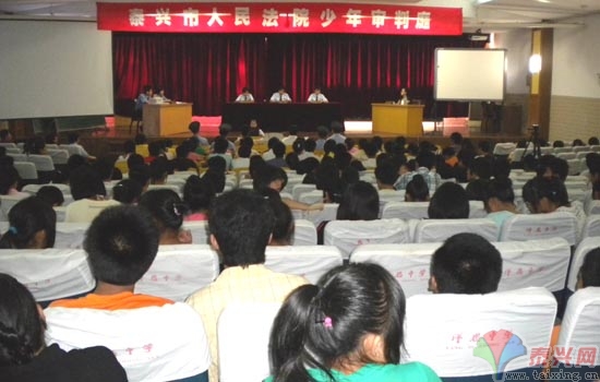 日前,泰興法院少年庭在洋思中學(xué)對涉及未成年犯罪的一起聚眾斗毆、尋釁滋事案進(jìn)行公開宣判和法庭教育。泰興市職教中心200余名學(xué)生參加了旁聽。(泰興法院 胡玲 丁曉楚)