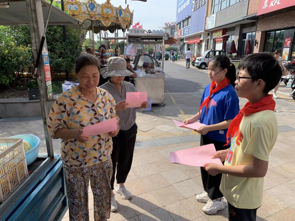 爭做創(chuàng)文明“宣傳員”。“叔叔,你好!這是‘文明新風’倡議書,麻煩您看看,并幫忙宣傳。”一聲聲稚嫩的童聲,渲染著文明新風的濃厚氛圍。古鎮(zhèn)微公益青年志愿者帶領(lǐng)著暑少年兒童,沿著街道向商鋪戶主、行人發(fā)放“文明新風”倡議書。小朋友們用自己的“小手”拉起身邊的每一雙“大手”,一起爭做文明市民,共同構(gòu)建文明新風尚。