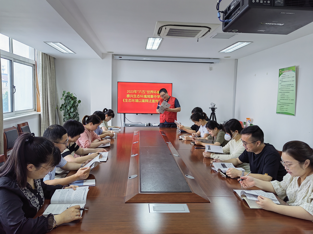 今年六五環(huán)境日主題是“建設(shè)人與自然和諧共生的現(xiàn)代化”,泰興生態(tài)環(huán)境局組織各地開(kāi)展內(nèi)容豐富、形式多樣的環(huán)境日主題活動(dòng),一起來(lái)看看吧。 泰興生態(tài)環(huán)境局 6月5日,泰興生態(tài)環(huán)境局組織青年黨員集中學(xué)習(xí)了《生態(tài)環(huán)境以案釋法宣傳讀本》,通過(guò)宣講法律知識(shí)并講解案例,大家對(duì)破壞生態(tài)環(huán)境帶來(lái)的后果有了深刻的法律認(rèn)識(shí),今后將會(huì)通過(guò)多種形式向群眾宣傳相關(guān)法律法規(guī),使廣大群眾自覺(jué)遵守法律法規(guī),提高環(huán)保意識(shí)。