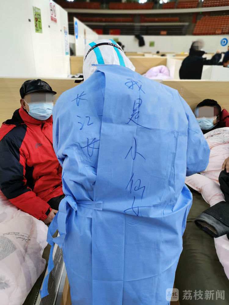 有的醫(yī)務(wù)人員在防護(hù)服背后寫下了“玩笑話”:“長江,長江,我是小仙女!”被逗樂的患者在防護(hù)服上幽默回復(fù):“土豆,土豆,我是小鮮肉!”