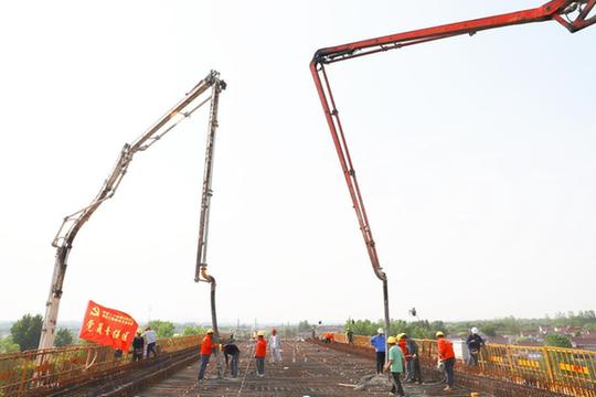 5月1日下午,經(jīng)過近30個小時的連續(xù)施工,江蘇南沿江城際鐵路跨304縣道連續(xù)梁兩側(cè)B節(jié)段順利完成混凝土施工,在全線率先完成合龍目標,為后續(xù)架梁作業(yè)奠定了基礎。