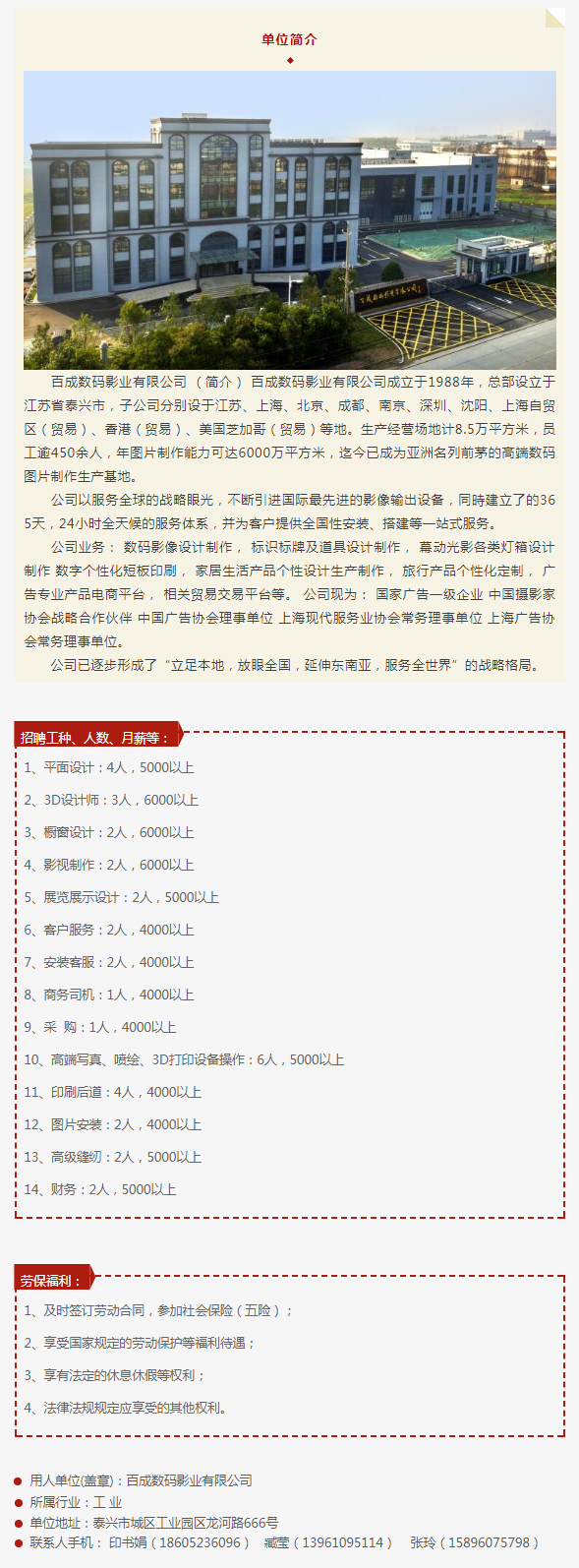 百成數(shù)碼影業(yè)有限公司2019招聘簡(jiǎn)章