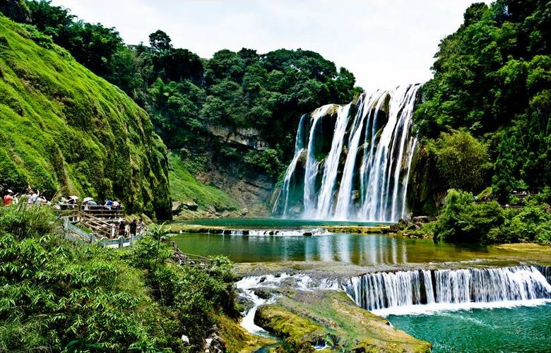 早餐后乘車前往【黃果樹景區(qū)】(車程約2.5小時)(含黃果樹瀑布,含天星橋,含陡坡塘瀑布,含區(qū)間車50元,不含黃果樹扶梯50),游覽有亞洲第一大瀑布之稱的黃果樹瀑布(黃果樹大瀑布您可選擇步行40分鐘至谷底或自行乘坐上下扶梯50元(單程30元)至谷底游覽)(游覽1.5H)-感受飛流直下三千尺,疑似銀河落九天之氣魄,游覽天星橋景區(qū)(游覽2H),漫步其中,到處可見泉水噴涌,飛瀑傾瀉,有水皆成瀑,是石總盤根成為天星橋的真實寫照:盆景園、水上石林,游覽陡坡塘瀑布(游覽1H)。贈送大型歌舞表演——多彩貴州風。