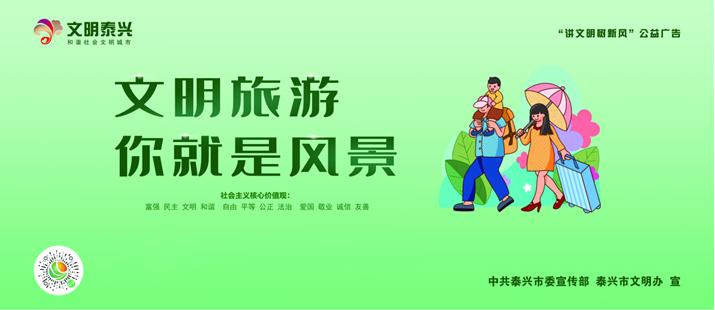 文明旅游,從我做起 從現(xiàn)在做起,從點滴做起 讓我們一起攜手 共同擦亮泰興文明旅游這張名片吧! |
