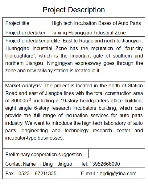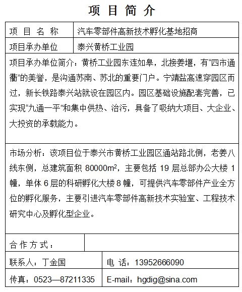 汽車零部件高新技術(shù)孵化基地招商