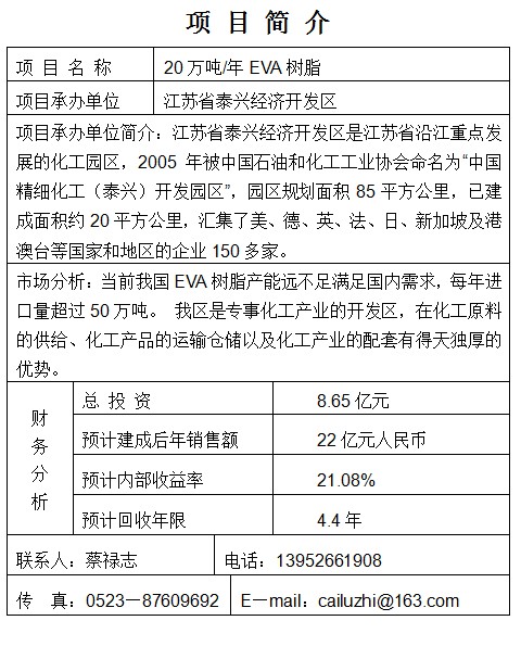 20萬噸/年EVA樹脂