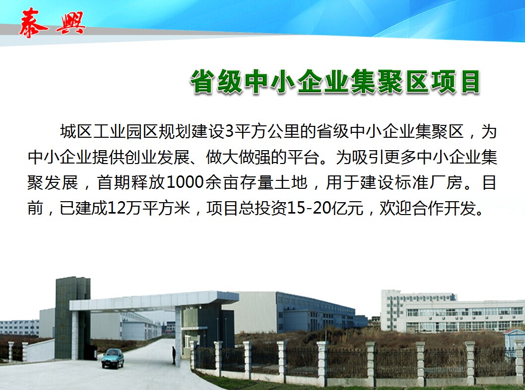 省級中小企業(yè)集聚區(qū)項目