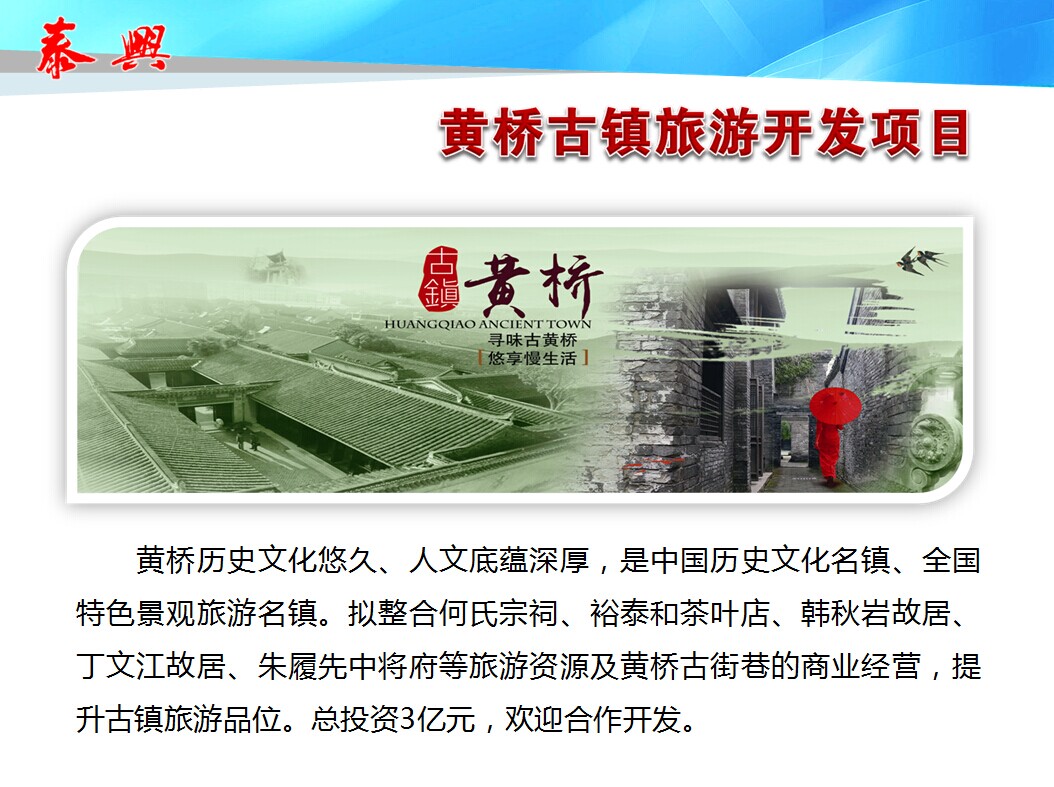 黃橋古鎮(zhèn)旅游開(kāi)發(fā)項(xiàng)目