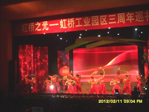 整場(chǎng)演出以展現(xiàn)虹橋工業(yè)園區(qū)發(fā)展為主線,星光璀璨,高潮迭起。央視《星光大道》2010年最佳市場(chǎng)組合獲得者——莫斯科女孩組合帶來(lái)了《紅梅花兒開(kāi)》、《莫斯科郊外的晚上》兩首歡快的青春舞曲;同樣是《星光大道》走出來(lái)的知名青年歌唱演員陸海濤,將模仿秀這一現(xiàn)代表演形式演繹到了極致。海政文工團(tuán)青年歌唱演員孫佳、湯俊在現(xiàn)場(chǎng)演繹了《美麗的心情》、《母親》等一首首耳熟能詳?shù)慕?jīng)典曲目;著名相聲演員賈玲、劉濤帶來(lái)的相聲《大嫁光臨》與現(xiàn)場(chǎng)觀眾精彩互動(dòng);南京市歌舞劇院帶來(lái)的女子舞蹈《豐收時(shí)節(jié)》預(yù)示著虹橋工業(yè)園區(qū)龍年再創(chuàng)新輝煌;著名歌手林萍帶來(lái)的《為今天喝彩》以及著名男中音歌唱家劉秉義演唱的《咱們工人有力量》將演出推向了高潮。 演出過(guò)程中,泰州市領(lǐng)導(dǎo)以及我市領(lǐng)導(dǎo)為虹橋工業(yè)園區(qū)發(fā)展的“最佳貢獻(xiàn)獎(jiǎng)”、“最佳服務(wù)獎(jiǎng)”和“最佳奉獻(xiàn)獎(jiǎng)”獲得者頒獎(jiǎng)。