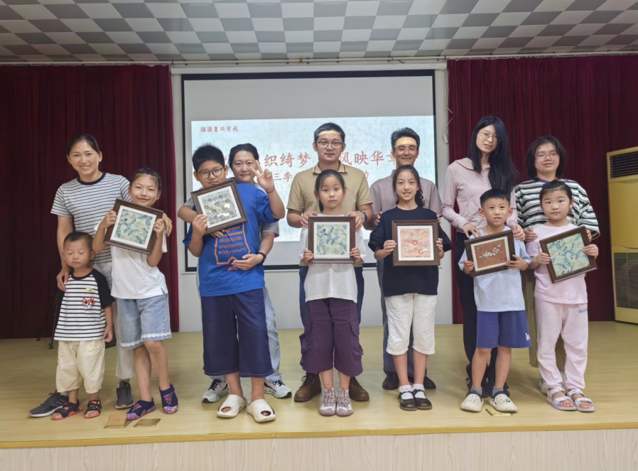 錦畫傳情,絲光珠影繪文化之美。“珠光流轉,織錦星河”將傳統(tǒng)絲綢工藝與現(xiàn)代美學相結合,孩子們在志愿者的指導下細細品味宋錦的華美,用珍珠元素對非遺文化進行重新演繹,點綴出一幅幅典雅精致的宋錦珍珠畫。家長和孩子們在講解中了解宋錦的歷史,在協(xié)作創(chuàng)作中感受非遺的魅力。“沒想到傳統(tǒng)的宋錦也能這么‘潮’,做成的珍珠畫既好看又有意義!”傳統(tǒng)美學的魅力,讓文化傳承在親子之間自然流淌。