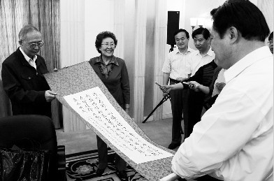 沈安娜子女來泰捐贈母親遺物 在北京沈安娜居住的小區(qū)里有一片銀杏樹,沈安娜常常從春天的綠葉看到秋天的黃葉,看到果實累累。93歲生日的時候,沈安娜要求在銀杏樹下給她留個影。如今,這張珍貴的照片被沈安娜子女捐贈出來。 本報訊(記者 楊 麗 通訊員 張倫 特約記者 張建榮)5月7日,祖籍泰興的原國家安全部咨詢委員沈安娜的子女華慶耒、華克放來到泰興捐贈母親生前遺物,為泰興名人館提供第一手資料,并在母親的母校泰興中學設立“沈安娜獎學金”。 當天上午10點半,沈安娜75歲的兒子華慶耒和71歲的女兒華克放一到泰興市政府,便將精心整理的母親遺物一一展示。 獨特的速記符號、工整的會議記錄、各種榮譽證書和勛章、警服、鋼筆、眼鏡……18件與沈安娜密切相關的圖片、手稿、生活用品等物品,讓在場的人感嘆。這些歷經(jīng)歲月洗禮的物品,是沈安娜革命生涯的真實寫照,也是當時中國重大事件的一個有力見證。 “這幅字是沈安娜老人在80歲時自己寫的。”華克放說,是母親為紀念抗日戰(zhàn)爭勝利50周年寫的,同時回憶自己在重慶的地下工作經(jīng)歷。記者看到,整幅字工整娟秀,上面寫著“烽火遍野九州驚,寶塔山下發(fā)命令,壯懷激烈赴戰(zhàn)場,撲朔迷離隱山城……” 在捐贈的遺物中,有一張沈安娜老人站在一排銀杏樹下的照片讓華克放十分不舍。華克放說,母親沈安娜17歲就離開了家鄉(xiāng)泰興,但她無時無刻不在思念著家鄉(xiāng)。母親對家鄉(xiāng)的熱愛是發(fā)自內心的。在北京居住的小區(qū)里有一片銀杏樹,她常從春天的綠葉看到秋天的黃葉,看到果實累累。“母親常說,我的家鄉(xiāng)泰興是‘銀杏之鄉(xiāng)’。所以,在她93歲生日的時候,她就要求在銀杏樹下給她留個影。”華克放深情地看了看母親的照片說。 記者看到,還有兩件沈安娜的貼身之物十分獨特:一件是伴隨沈安娜幾十年的小鏡子,雖然舊了,但卻完好無損。小鏡子外殼上已經(jīng)斑駁的粉紅色,暗示著沈安娜是個愛美的女子,更是個細心珍惜物品的女子。另外一件是黑色手焐子,從解放前一直跟隨著沈安娜。華克放將母親的手焐子掛在自己的脖子上一邊展示一邊介紹說:這個手焐子除了冬天可以焐手,平時還可以當小包裝東西用。“沒想到母親還有這個時尚的東西。”華克放說,母親是個很懂得生活的人。 當天下午,沈安娜子女一行又來到沈安娜母校泰興中學,將母親生前省吃儉用的10萬元儲蓄設立為“沈安娜獎學金”,以此激勵家鄉(xiāng)品學兼優(yōu)的學生,鼓勵他們學有所成、學以致用,將來為國家和社會多作貢獻。 |