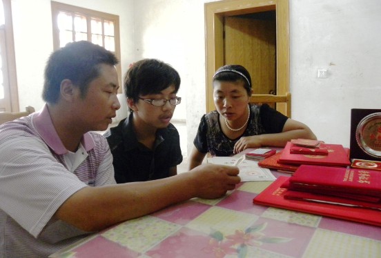 ![]() 圖片說明:殷建華、季玲娣夫婦和兒子殷云龍一起整理獻(xiàn)血證和各類榮譽(yù)證書。(孫紀(jì)剛攝)