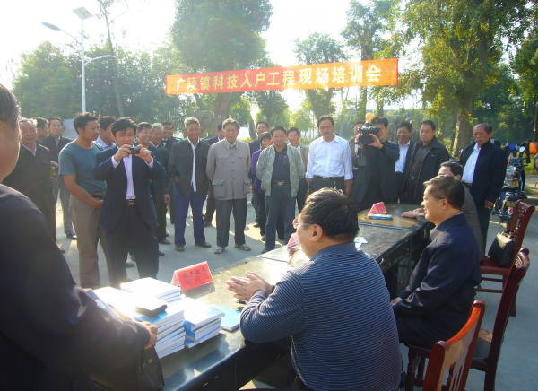 ![]() 為了提高科技入戶培訓班的效果,讓水產(chǎn)養(yǎng)殖示范戶都能更好地掌握培訓的內(nèi)容,并能聯(lián)系各自的養(yǎng)殖實際加以靈活應當用,經(jīng)過兩名技術指導員的精心準備,在江蘇泰興市廣陵鎮(zhèn)政府、農(nóng)業(yè)服務中心的大力支持下,2011年9月25日上午在普豐生態(tài)園舉辦了漁業(yè)科技入戶現(xiàn)場培訓班。兩名技術指導員、廣陵鎮(zhèn)農(nóng)業(yè)中心的全體工作人員、10個自然村的分管農(nóng)業(yè)的工作的主任、40個水產(chǎn)養(yǎng)殖示范戶、20個水產(chǎn)養(yǎng)殖輻射戶代表近一百人參加了這次培訓班。 這次培訓班共分四個議程:一是由廣陵鎮(zhèn)農(nóng)業(yè)中心主任張書斌同志作了漁業(yè)科技入戶工作報告,他在報告中充分肯定了前一階段廣陵鎮(zhèn)漁業(yè)科技入戶取得的成績,對示范戶今后的工作提出了明確了工作要求,并指出這次培訓班從會議室轉到了塘口,這是改進工作方式,提高指導效率的具體體現(xiàn),希望各養(yǎng)殖戶把握好這次培訓的機會,仔細看、認真聽,從理論知識和實際操作兩個層面掌握好新知識、新技能,回去后盡快運用到養(yǎng)殖生產(chǎn)中,轉化為提高養(yǎng)殖效益的現(xiàn)實生產(chǎn)力。二是與會人員參觀了普豐生態(tài)園的河蟹、泥鍬等養(yǎng)殖池,聆聽了示范戶張繼明有關養(yǎng)殖情況的現(xiàn)場介紹。三是市漁業(yè)科技入戶專家組成員、高級工程師熊文藻同志主講了秋季漁病防治技術。四是由技術指導員耿建國主講了水質(zhì)綜合調(diào)控技術。 |