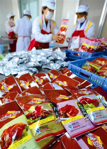 記者 陳亞斌 通訊員 徐界平)“我把二維碼印在名片上,只要手機(jī)輕松一掃,就能看到‘豬五寶’的介紹和我的個(gè)人信息。”創(chuàng)意面前,泰興市黃橋鎮(zhèn)怪味鮮食品有限公司總經(jīng)理王良扣笑稱自己是“黃橋第一個(gè)會(huì)玩二維碼的鹵菜店老板”。而在廠子員工和附近村民的眼中,王良扣還有另一個(gè)“第一”——第一個(gè)鹵出“黃橋豬五寶”的人。 提起“豬四寶”,久居黃橋的居民想必并不陌生。這道發(fā)源于黃橋鎮(zhèn)劉陳地區(qū)的百年鹵味,具有補(bǔ)虛、滋陰、養(yǎng)血、潤(rùn)燥的功效,雖早已成為當(dāng)?shù)鼐用癫妥郎系闹鹘,卻一直未能打開外地市場(chǎng)。5年前,王良扣在傳統(tǒng)“豬四寶”基礎(chǔ)上鹵出 “豬五寶”,并于今年9月正式獲批了“豬五寶”商標(biāo),看似簡(jiǎn)單的加法背后,卻幫助這道黃橋名吃成功走出泰興,走向全國。 巧做“4+1” “拱”到食客“麻筋” “‘豬五寶’的名氣是‘拱’出來的,這一拱正好拱到了食客們的‘麻筋’!”王良扣說。 王良扣口中的“拱”,指的是豬的“拱嘴兒”,其實(shí)就是豬的嘴唇。“老人們常講,經(jīng);顒(dòng)的肉才好吃,嘴唇吃起來肥而不膩,其實(shí)是整頭豬身上最好的肉,也正是這個(gè)‘拱’字引得食客們趨之若鶩。”王良扣說。 “一頭豬一般只能取三兩豬拱嘴兒肉,這就相當(dāng)于吃鴨只吃鴨舌一般珍貴。”王良扣告訴記者,傳統(tǒng)的“豬四寶”之一“豬頭肉”中,一般同時(shí)混有豬拱嘴兒、眼膛肉等多個(gè)部位,市場(chǎng)價(jià)至多20元一斤,如今只鹵拱嘴兒,品質(zhì)提高了,價(jià)錢也提高到每斤50元。 傳統(tǒng)的“劉陳豬四寶”包括鹵制的豬頭肉、豬尾巴、豬舌頭和豬耳朵,“豬五寶”選料更加精細(xì),將豬頭肉改為單純的鹵拱嘴兒,并添了豬蹄一寶。“長(zhǎng)久以來,‘豬四寶’一直以又香又糯、肥而不膩聞名,能達(dá)到這種口感的原料,除了豬頭上的四寶,還有一個(gè)豬蹄,于是我們就決定將豬蹄列為第五寶。”王良扣介紹。 沒想到的是,正是這道豬蹄成了“豬五寶”叩開外地市場(chǎng)的敲門磚。“東北、華北、浙江等地顧客尤其鐘愛豬蹄,嘗了豬蹄,咱就不愁他不把五寶吃個(gè)遍。”王良扣說。 “五寶”融四味 嘗遍“川、徽、淮、滬” 常吃鹵菜的市民大多都有這樣一個(gè)感覺,大大小小的鹵菜店里,豬頭肉、豬耳朵、豬尾巴等菜吃起來通常都是一個(gè)味兒,應(yīng)該是同一鍋鹵湯“煨”出來的。 “我們把‘豬五寶’裝在一起賣,要都是一個(gè)味兒,外地的顧客怕是不會(huì)買賬。”王良扣說,“豬五寶”中的每一寶都有不同的風(fēng)味,體現(xiàn)不同的特色,味蕾上層次分明的記憶,正是產(chǎn)品持續(xù)熱銷的奧秘。 王良扣的妻子告訴記者,辦廠之前王良扣開過鹵菜店,為了學(xué)好手藝,他先后共拜過四位師傅。巧的是,這四位師傅分別來自四川、安徽、揚(yáng)州和上海,讓王良扣能夠博采眾長(zhǎng),兼顧四味。 記者現(xiàn)場(chǎng)打開一箱“黃橋豬五寶”禮盒,其中既有川香的泡椒豬尾,也有徽派的五香豬蹄。若你想嘗一嘗傳統(tǒng)的淮揚(yáng)口味,不妨試一試鹵香的豬拱嘴兒和鹽水豬舌。要是你喜好海派風(fēng)味,禮盒里還有香糟風(fēng)味的豬耳等你品嘗。 為了更好地迎合外地市場(chǎng),王良扣還給土生土長(zhǎng)的豬頭肉、豬尾、豬舌、豬耳、豬腳換上了“洋氣”的新名字,搖身一變成了“饞嘴八戒”、“望君節(jié)節(jié)高”、“醬香口條”、“千層脆耳”和“鴻運(yùn)豬蹄”。 “別小看這些名字,它們可是我和四位師傅商量了一個(gè)禮拜才定下來的,如今看來市場(chǎng)反映很不錯(cuò)!”王良扣說。 養(yǎng)豬搞“外包” “鏈”動(dòng)農(nóng)戶增收 隨著“豬五寶”品牌的打響,王良扣的廠子里每天的生豬需求量達(dá)到200多頭。豬從哪兒來?一時(shí)間成了困擾他的頭號(hào)難題。 “我也曾想過從浙江、山東等地收豬,但收來的豬肉質(zhì)量難免良莠不齊。”王良扣介紹,三年前,他開始嘗試把養(yǎng)豬業(yè)務(wù)“外包”給黃橋當(dāng)?shù)剞r(nóng)戶,如今已經(jīng)帶動(dòng)了60多戶農(nóng)戶一起發(fā)起“豬財(cái)”。 一位替王良扣養(yǎng)豬的村民告訴記者,“外包”養(yǎng)豬從豬崽到飼料全部由怪味鮮公司免費(fèi)提供,并由公司按市場(chǎng)價(jià)統(tǒng)一收購,公司還會(huì)派專人定期指導(dǎo)養(yǎng)殖技術(shù)和防病防疫。遇上生豬行情不好的年份,王良扣還會(huì)給農(nóng)戶制定最低保護(hù)價(jià),去年一頭豬的保護(hù)價(jià)為220元,今年已經(jīng)漲到了250元。 “這樣一條品質(zhì)有保證的上游供應(yīng)鏈,不僅確保了生豬供應(yīng)量的穩(wěn)定,更確保了生豬原料質(zhì)量的安全,成了‘豬五寶’產(chǎn)品進(jìn)入大城市、大超市的一把金鑰匙。”王良扣說。 如今,“黃橋豬五寶”共開發(fā)出6種不同規(guī)格的包裝,產(chǎn)品遠(yuǎn)銷到東北、上海、浙江、四川、海南等地,并且直接擺上了樂天瑪特、世紀(jì)聯(lián)華、大潤(rùn)發(fā)等大型超市的貨柜,年產(chǎn)值達(dá)到700多萬元。 |