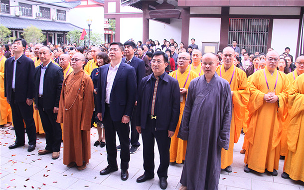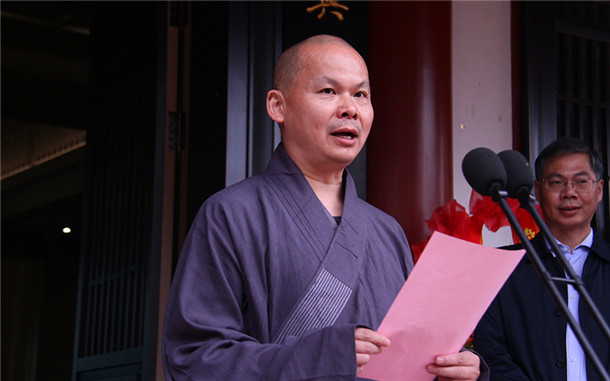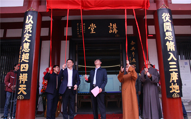 揭牌儀式 隨后舉行慶云禪寺三慧樓揭牌儀式。劉輝部長、謝紅官市長、凈因法師、能度法師、曹龍祥董事長上臺共同為新落成的三慧樓揭牌。