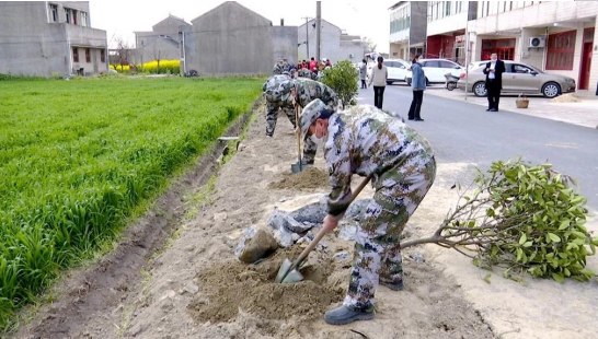 曲霞鎮(zhèn) 在曲霞鎮(zhèn)朱圩村八組九組莊前道路兩側(cè),三十多名民兵和志愿者正在忙碌。道路長(zhǎng)1100米,兩側(cè)將栽插90棵紅葉石楠、30棵桂花樹。朱圩村圍繞“三清一綠”行動(dòng)方案,重點(diǎn)打造部分村莊主干道兩旁綠化,并組織大批村民,整治提升村莊環(huán)境。
