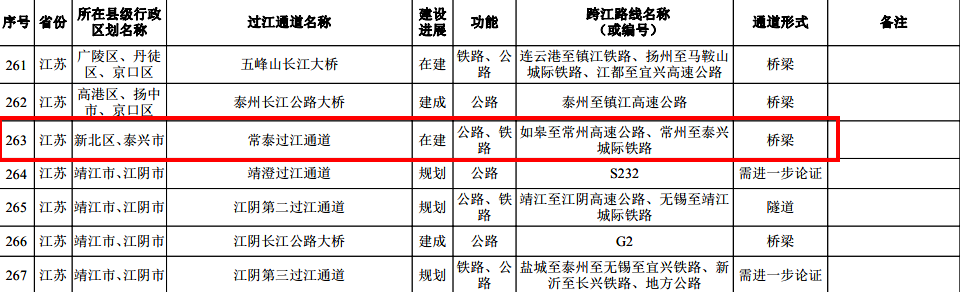 《長(zhǎng)江干線過江通道布局規(guī)劃(2020—2035年)》(簡(jiǎn)稱《規(guī)劃》)由國(guó)家發(fā)改委正式印發(fā),長(zhǎng)江干線過江通道建設(shè)將有章可循。到2035年,長(zhǎng)江干線過江通道將建成過江通道240座左右,為我國(guó)現(xiàn)代化經(jīng)濟(jì)體系建設(shè)、長(zhǎng)江經(jīng)濟(jì)帶高質(zhì)量發(fā)展提供有力支撐。在規(guī)劃布局的江蘇41座過江通道中,常泰過江通道赫然在列!