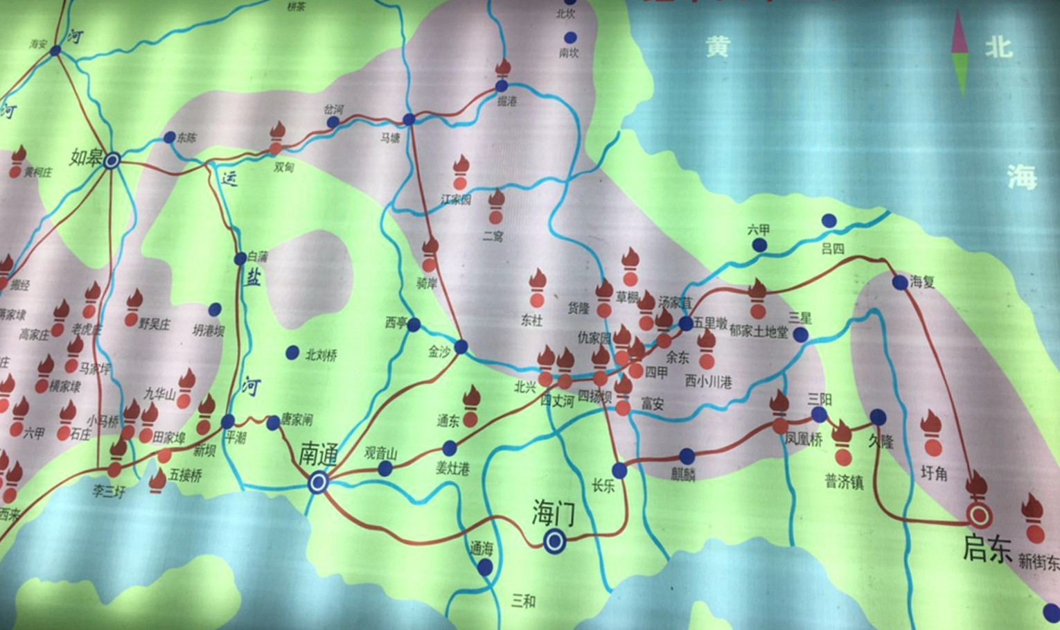 “全國工農(nóng)斗爭在復興,農(nóng)民群眾的武裝斗爭日益普遍的發(fā)展……南通、如皋、泰興等江北縣份,是赤色農(nóng)民武裝斗爭最激烈的區(qū)域。”——《中國蘇維埃·全國蘇維埃區(qū)域與紅軍擴大的總形勢》(1930.1),1930年初,泰縣、如皋、泰興3縣邊境地區(qū)的根據(jù)地連成一片,初步開辟了如皋城、九華山以西,石莊、西來鎮(zhèn)以北,季家市、黃橋以東,曲塘以南的大塊游擊區(qū)。這是江蘇較早的蘇維埃區(qū)域之一。