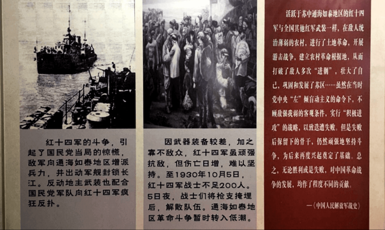 整編后的如泰紅軍戰(zhàn)斗力大大加強,多次取得戰(zhàn)斗的勝利。1930年1月11日,如泰紅軍進攻搬經(jīng)鎮(zhèn),焚毀盧港區(qū)公安分局、區(qū)公所、國民黨區(qū)分部、縣警隊第二中隊部等處房屋。1月18日,薛衡競率紅軍冒著鵝毛大雪夜襲顧高莊據(jù)點,戰(zhàn)斗不到一小時就勝利結(jié)束,俘敵40余人,繳步槍38支,手提式機關(guān)槍3支,小炮1門。在那風雨如磐的年代,星星之火,必將燃起燎原之勢。1930年4月,中國工農(nóng)紅軍第十四軍正式建立。