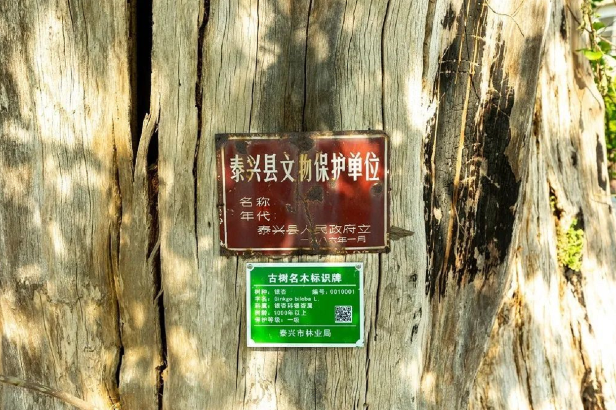自此后,古銀杏樹不再結(jié)果,變?yōu)樾坌詷,每到授花季?jié),花香四溢,很多百姓采花粉回去授之。銀杏樹廣傳天下,最茂盛的時候,人們坐在樹下乘涼,一抬手就能觸到樹枝。由于遭天災(zāi)、雷擊等影響,銀杏樹被從中劈斷,神奇的是,第二年從中長出雜樹,銀杏樹也再次長出新的枝椏,繁衍至今。 后來,人們將此樹供奉起來,每逢初一、十五都會上香、叩頭。有很多小孩身體不好,或家長怕麻煩,都是直接將小孩寄扣在這里,每年正月十五、端午、中秋都帶小孩前來祭拜! 相傳,在栽種此樹時,劉伯溫還留下石馬、石獅守護(hù)。后經(jīng)戰(zhàn)亂、時代更迭,石馬、石獅不見蹤影。1986年1月,泰興縣人民政府正式掛牌,確定此樹為文物,進(jìn)行保護(hù);1990年泰興林業(yè)局進(jìn)行第一次維護(hù),用磚頭砌圍墻;2011年泰興林業(yè)局進(jìn)行第二次維護(hù),改為鐵籬圍墻,并多方打聽尋找石馬、石獅下落,將放在皂角大站做擋水墻的石獅從墻中鑿出來,將深埋在河底的石馬打撈出來,最后將一對石獅放在鐵籬大門兩側(cè),石馬放在鐵籬內(nèi)大樹西邊。 2019年9月,泰興市自然資源規(guī)劃局再次對此樹實施保護(hù)。
