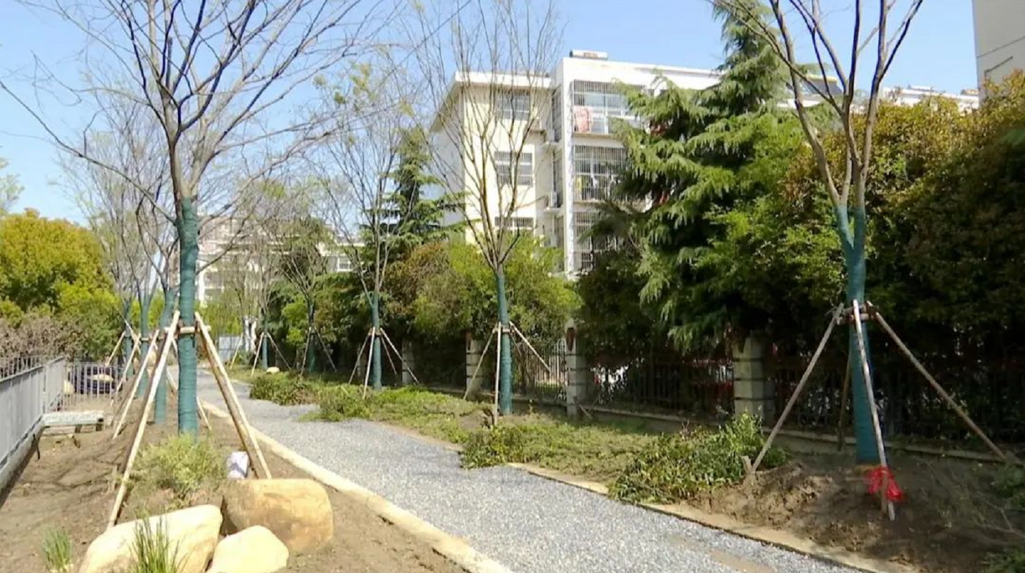 科泰路南段、道路兩側(cè)綠化已完成雨水管道鋪設(shè)和土方造型,并啟動(dòng)綠化栽植,慢行步道和綠化同步施工,爭(zhēng)取5月底之前完成。