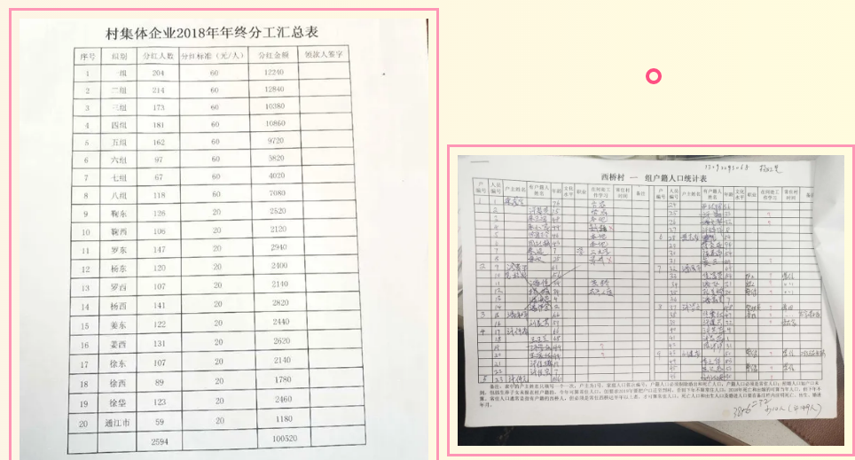 “這是西橋村二組戶籍登記表和村集體企業(yè)2018年年終分工匯總……”村會(huì)計(jì)劉海美對(duì)村集體財(cái)務(wù)情況了如指掌,“這是我們18年集體經(jīng)濟(jì)給村民的分紅,根據(jù)人口統(tǒng)計(jì),按人頭發(fā)放。”