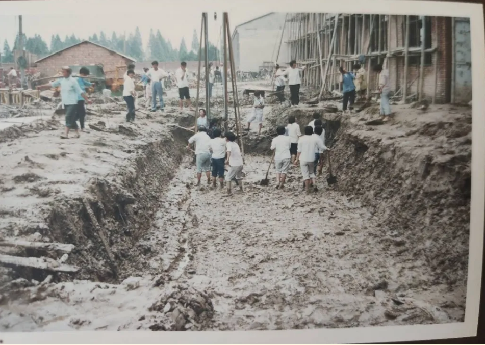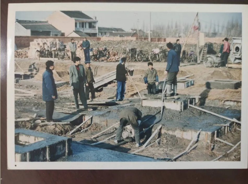 采訪中,袁衛(wèi)東翻出了一些老照片,他說,這是西橋軋輥廠建設(shè)現(xiàn)場照片,當(dāng)時(shí)軋輥廠開始建設(shè)后,村里的男女老少齊上陣,挑泥的挑泥,挖沙的挖沙,大家忙得熱火朝天。