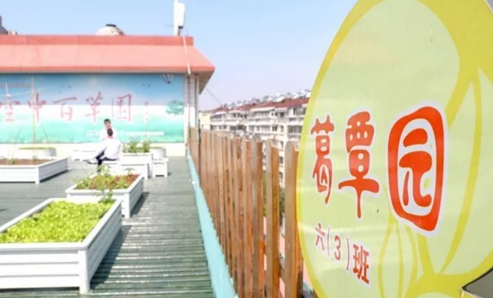 “不必說(shuō)碧綠的菜畦,光滑的石井欄,高大的皂莢樹(shù),紫紅的桑葚;也不必說(shuō)鳴蟬在樹(shù)葉里長(zhǎng)吟,肥胖的黃蜂伏在菜花上,輕捷的叫天子(云雀)忽然從草間直竄向云霄里去了……何首烏藤和木蓮藤纏絡(luò)著,木蓮有蓮房一般的果實(shí),何首烏有擁腫的根。”——魯迅《從百草園到三味書(shū)屋》風(fēng)景優(yōu)美、植物繁茂,還有各種可愛(ài)的小動(dòng)物,這是魯迅先生筆下的百草園。這里裝著他兒時(shí)關(guān)于植物、關(guān)于草木的溫暖記憶。這里是他的童年樂(lè)園,也是他對(duì)家的懷念。 當(dāng)微風(fēng)拂過(guò),紅的、綠的、黃的,各種植物迎風(fēng)招展,在陽(yáng)光照耀下,茁壯成長(zhǎng)。這是哪兒?定睛一看,這不是孩子們的“空中百草園”嘛。
