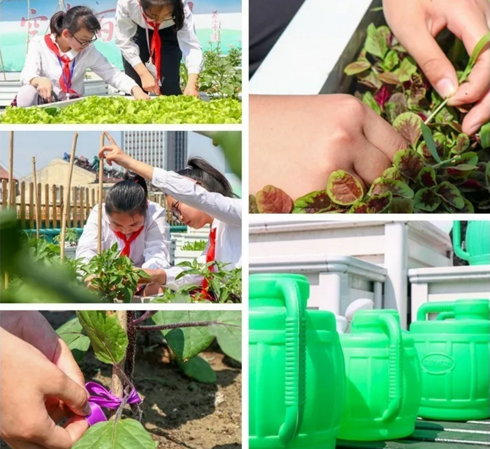 由于學(xué)校地處城區(qū),面積較小,為了讓孩子們更加貼近自然,體驗(yàn)勞動(dòng)的樂(lè)趣,十年前,學(xué)校老師們集思廣益,在教學(xué)樓樓頂開(kāi)辟了一塊實(shí)踐基地,將其命名為“空中百草園”。 時(shí)光荏苒,“空中百草園”已經(jīng)成了學(xué)校勞動(dòng)教育培訓(xùn)基地,當(dāng)然,這里也成了每個(gè)附小學(xué)子記憶深刻的那塊樂(lè)土。