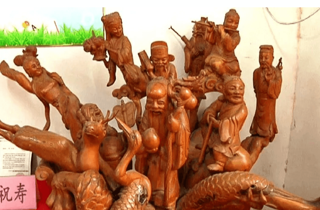 ●泰興銀杏木雕● 根雕藝術(shù)起源于唐朝,多見于寺廟、明清盛行。選購適合的銀杏樹根,去皮后置水浸數(shù)月,撈出陰干,根據(jù)造型構(gòu)思。經(jīng)精細(xì)圓雕、鏤雕、拼雕等多種手法加以創(chuàng)作,成形后打磨、刨光、上漆或打蠟。根雕的題材,多為吉祥如意、宗教信仰內(nèi)容,主要用于室內(nèi)裝飾和收藏等。