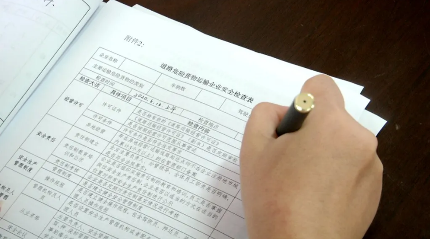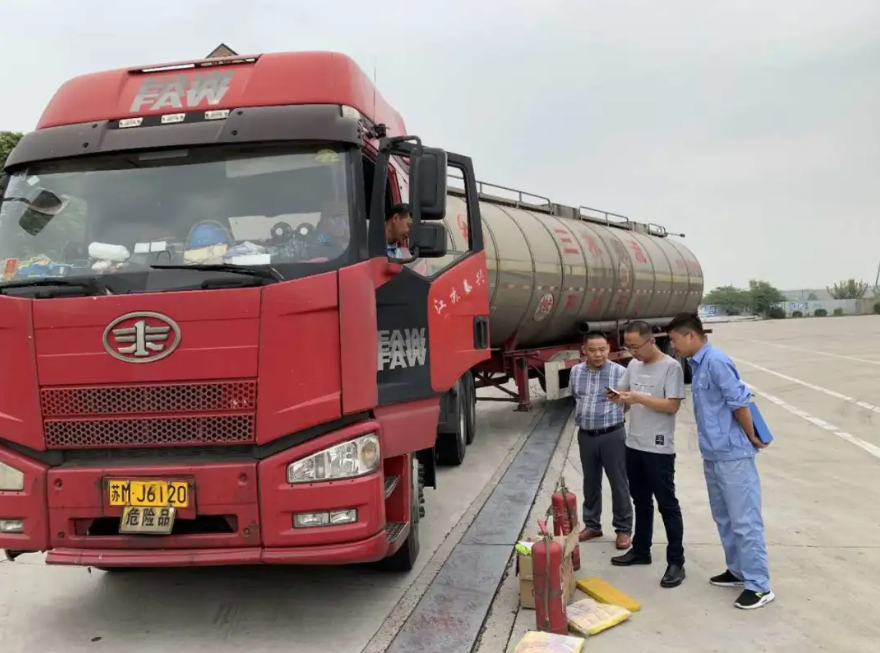 檢查組一行先后來(lái)到江蘇三木物流有限公司、太平洋化學(xué)危險(xiǎn)貨物運(yùn)輸有限公司兩家企業(yè)進(jìn)行檢查。重點(diǎn)對(duì)公司駕駛員及押運(yùn)員從業(yè)資格證及車(chē)輛資質(zhì)、車(chē)輛技術(shù)檔案、衛(wèi)星定位實(shí)時(shí)監(jiān)控、駕駛員安全教育培訓(xùn)、車(chē)輛安全防護(hù)用品配備等重點(diǎn)安全營(yíng)運(yùn)方面進(jìn)行檢查。在兩家公司;愤\(yùn)輸車(chē)輛停車(chē)場(chǎng),執(zhí)法人員對(duì)企業(yè)槽罐車(chē)輛安全情況進(jìn)行檢查,全面排查危運(yùn)車(chē)輛車(chē)況、消防設(shè)施及相關(guān)防護(hù)措施是否落實(shí)到位。