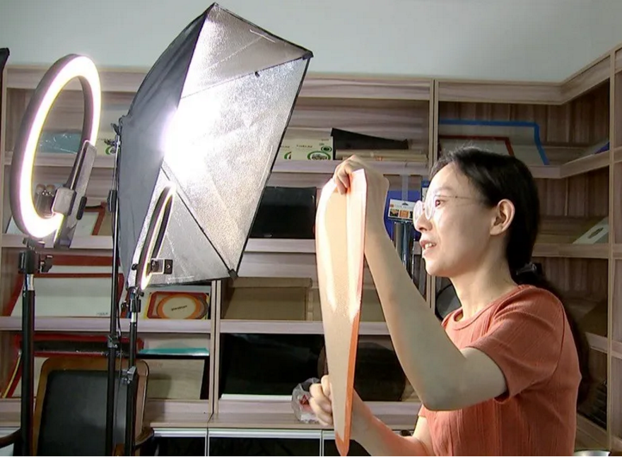在永盛氟塑制品有限公司的展廳里,銷售人員化身網(wǎng)絡主播,在鏡頭前直播帶貨,同時現(xiàn)場用烤箱烤制餅干的方式全方位展現(xiàn)烤爐片的良好性能。永盛氟塑主要生產(chǎn)耐高溫布、硅膠烘焙墊等產(chǎn)品,2019年企業(yè)出口額達6000萬元,對于今年的網(wǎng)上廣交會,企業(yè)將推廣10種面對廚房燒烤類的新產(chǎn)品。