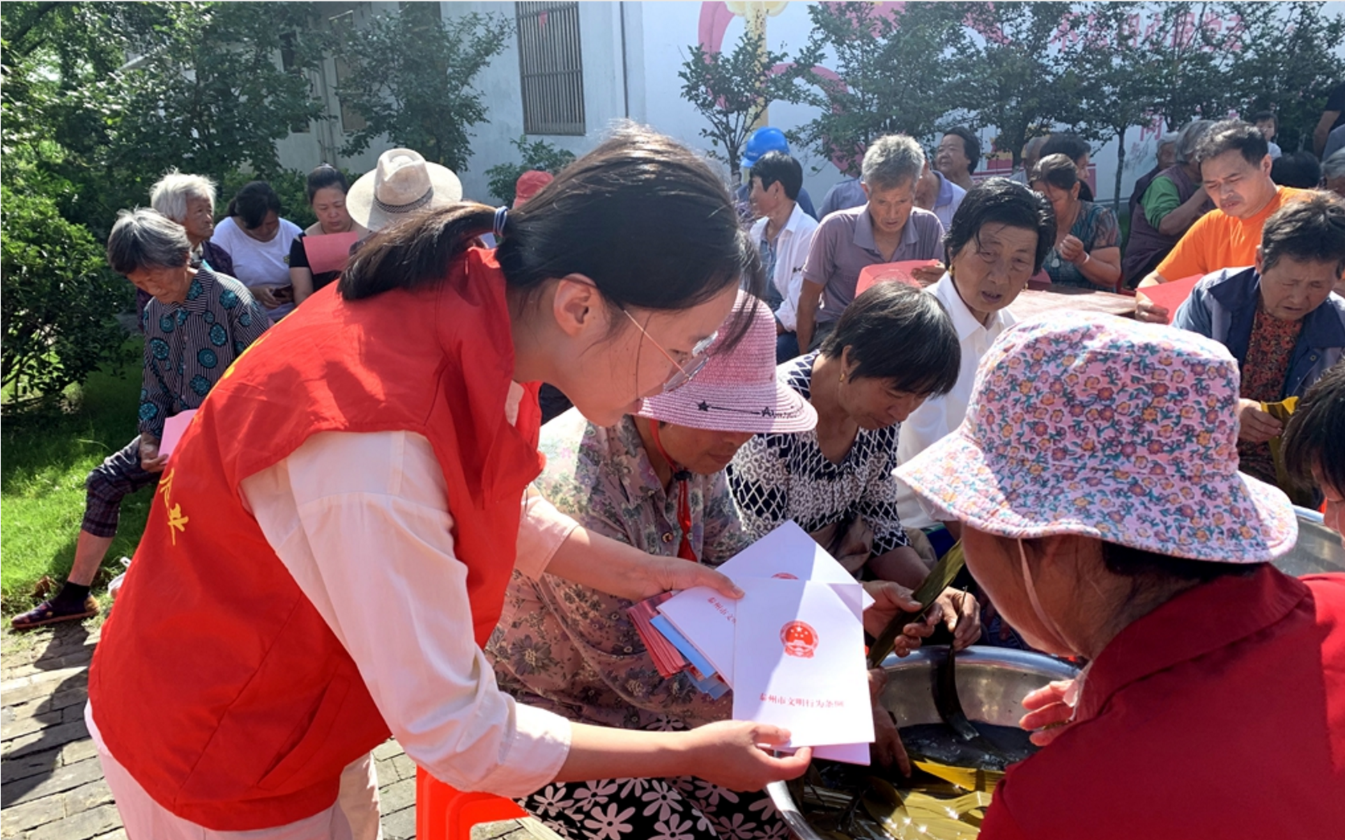 光芒四射,群參眾議擴(kuò)影響。在“一米陽光”志愿服務(wù)的感染下,更多的市民自發(fā)加入,成立起“百姓志愿小分隊(duì)”:新港村“環(huán)保護(hù)衛(wèi)小先鋒隊(duì)”;根思村硬核“老年突擊隊(duì)”;南湖村“百姓名嘴粉絲團(tuán)”走進(jìn)田間村口,當(dāng)起理論宣講志愿者,現(xiàn)場(chǎng)開辦“板凳會(huì)”;李秀河村組織群眾代表定期座談。陽光燦爛,志愿飄紅,根思大地悄然掀起了“有困難找志愿者,有時(shí)間做志愿者,人人都是志愿者”的新潮流。