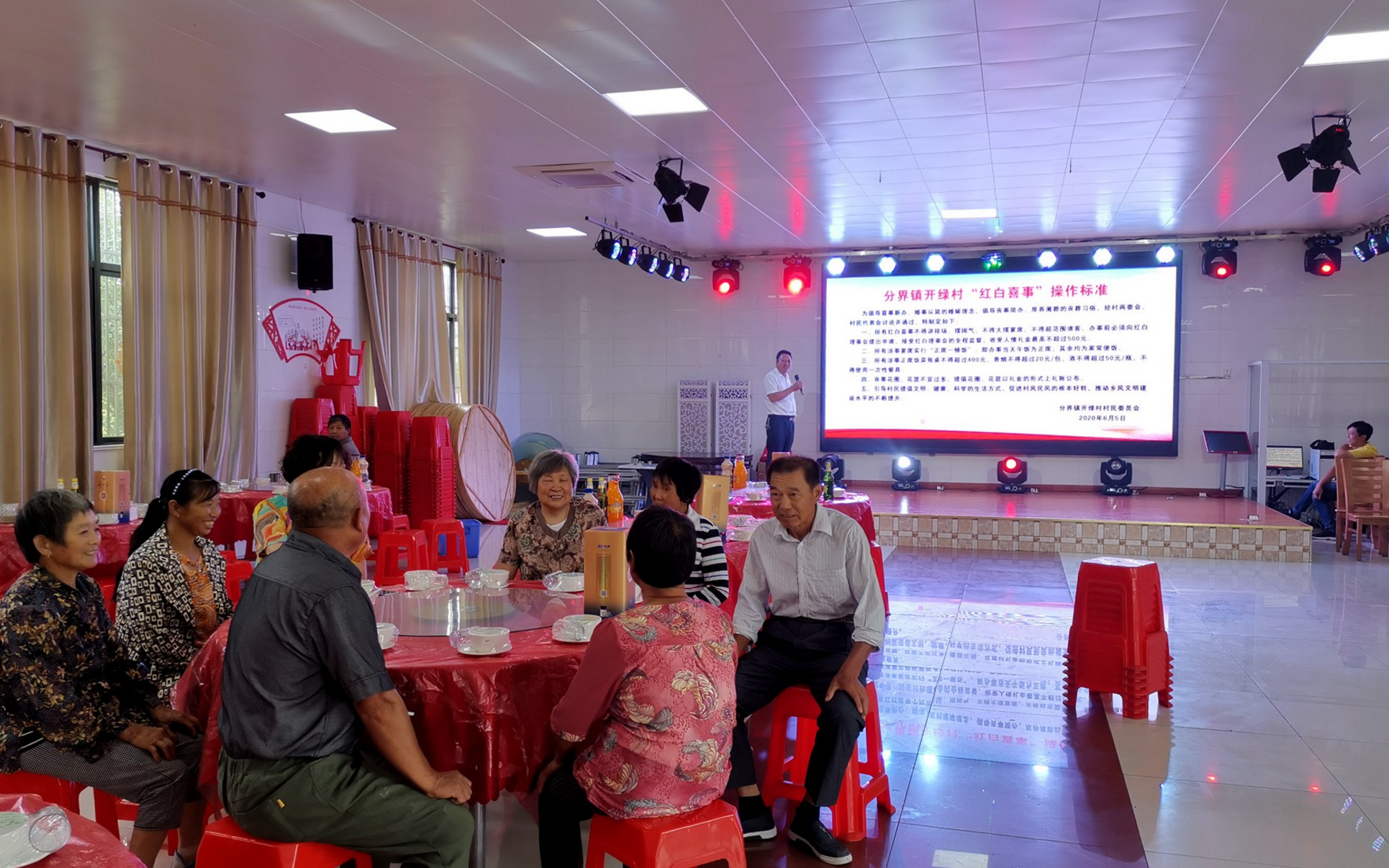 樹立一種好風(fēng)氣——全員參與移風(fēng)易俗 “婚喪嫁娶反浪費(fèi),請(qǐng)找紅白理事會(huì),六個(gè)盤來六個(gè)碗,可口飯菜不要剩。”在開綠村百姓大舞臺(tái)上,村文藝隊(duì)將村規(guī)民約編成《移風(fēng)易俗七字歌》演出傳唱,婦孺老幼耳熟能詳。開綠村開辟宣傳欄、文化墻,大力宣傳社會(huì)主義核心價(jià)值觀和移風(fēng)易俗相關(guān)內(nèi)容,使黨員干部和群眾在潛移默化中加深理解,入腦入心。“全鎮(zhèn)還利用新時(shí)代文明實(shí)踐所站、道德講堂等平臺(tái),傳播文明祭祀、建設(shè)節(jié)約型社會(huì)新風(fēng)尚;開展‘好鄰居’’好婆媳‘‘美德善行榜’等推薦評(píng)選活動(dòng),樹立鄉(xiāng)風(fēng)文明典型,為鄉(xiāng)村振興凝聚正能量。”分界鎮(zhèn)黨委書記樊暉表示。