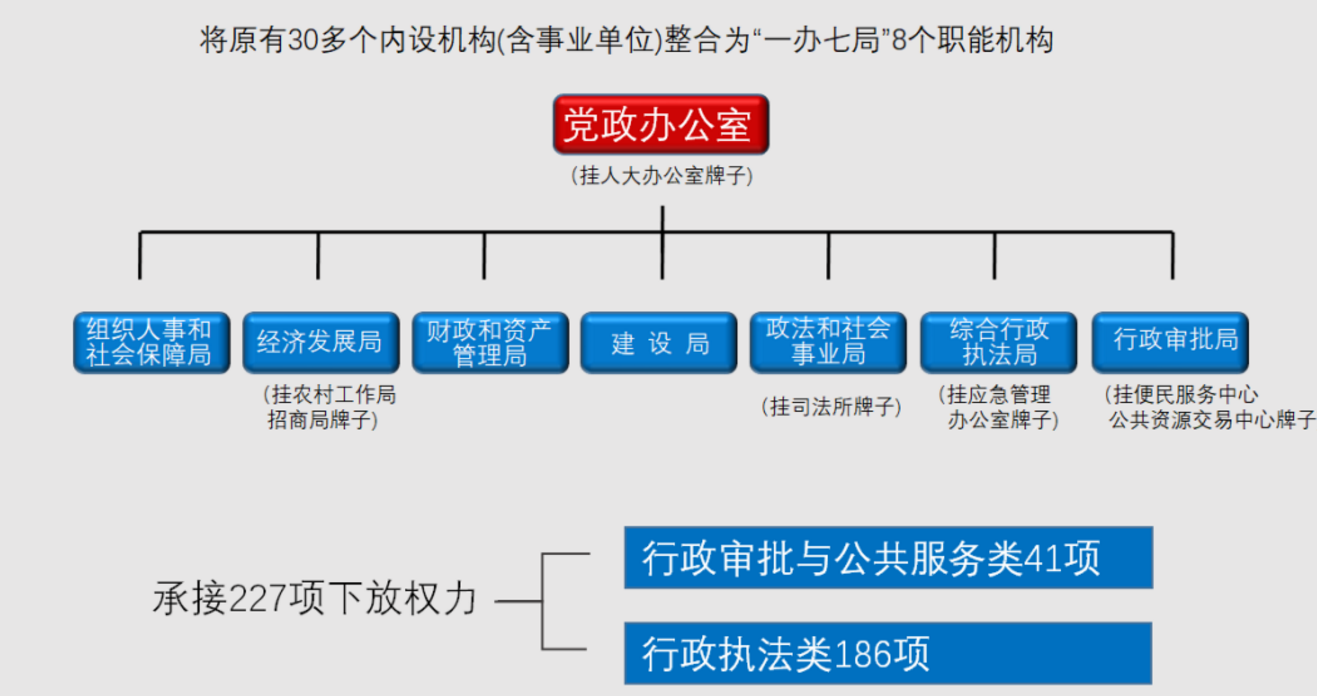 據(jù)了解,泰興市《實(shí)施方案》明確了7個(gè)方面23項(xiàng)工作任務(wù),以加強(qiáng)黨的全面領(lǐng)導(dǎo)為統(tǒng)領(lǐng),充分發(fā)揮鄉(xiāng)鎮(zhèn)(街道)黨(工)委領(lǐng)導(dǎo)作用。突出強(qiáng)調(diào)健全黨的組織體系,在鄉(xiāng)鎮(zhèn)(街道)職能機(jī)構(gòu)掛牌設(shè)立黨建工作辦公室,配備組織員。完善鄉(xiāng)鎮(zhèn)(街道)黨(工)委運(yùn)行機(jī)制,實(shí)行黨建工作分工負(fù)責(zé)制,強(qiáng)化黨建責(zé)任和任務(wù)“雙清單”管理。突出政治功能,推動(dòng)基層黨委、支部、黨員和群眾四個(gè)主體聯(lián)動(dòng)共進(jìn)。 《實(shí)施方案》提出,強(qiáng)化基層政務(wù)服務(wù)體系建設(shè),實(shí)現(xiàn)審批服務(wù)一窗口。綜合設(shè)置審批服務(wù)機(jī)構(gòu),實(shí)現(xiàn)“一口受理、一窗通辦、集成服務(wù)”;相關(guān)部門設(shè)在鄉(xiāng)鎮(zhèn)(街道)的服務(wù)窗口和水電氣等民生服務(wù)窗口全部進(jìn)駐為民服務(wù)中心;建立專業(yè)化代辦幫辦服務(wù)隊(duì)伍,選優(yōu)配強(qiáng)骨干力量。優(yōu)化政務(wù)服務(wù)流程,實(shí)行“馬上辦、網(wǎng)上辦、就近辦、一次辦”,積極推進(jìn)“不見(jiàn)面審批(服務(wù))”改革。創(chuàng)新政務(wù)服務(wù)模式,建立健全鄉(xiāng)鎮(zhèn)(街道)、村(社區(qū))兩級(jí)聯(lián)動(dòng)的便民服務(wù)網(wǎng)絡(luò),推進(jìn)同城通辦的公安出入境、稅務(wù)、公積金等民生服務(wù)類事項(xiàng)進(jìn)駐黃橋等重點(diǎn)中心鎮(zhèn)的便民服務(wù)平臺(tái),輻射周邊鄉(xiāng)鎮(zhèn)。 推進(jìn)基層綜合行政執(zhí)法體制改革,實(shí)現(xiàn)綜合執(zhí)法一隊(duì)伍。統(tǒng)一組建綜合行政執(zhí)法機(jī)構(gòu),整合鄉(xiāng)鎮(zhèn)(街道)現(xiàn)有執(zhí)法力量和資源,組建鄉(xiāng)鎮(zhèn)(街道)綜合行政執(zhí)法局,實(shí)現(xiàn)“一支隊(duì)伍管執(zhí)法”。強(qiáng)化綜合行政執(zhí)法能力建設(shè),每個(gè)鄉(xiāng)鎮(zhèn)(街道)配備不少于4名具有行政執(zhí)法資格的人員以及相應(yīng)執(zhí)法裝備,并配備一定數(shù)量的執(zhí)法輔助人員。探索綜合行政執(zhí)法新模式,對(duì)專業(yè)性較強(qiáng)、執(zhí)法要求較高的執(zhí)法行為,采取“鎮(zhèn)(街)呼市應(yīng)”的方式,由市相關(guān)部門配合鄉(xiāng)鎮(zhèn)(街道)開(kāi)展執(zhí)法工作。完善綜合行政執(zhí)法監(jiān)管機(jī)制,規(guī)范執(zhí)法程序和行為,推行執(zhí)法全過(guò)程記錄、行政執(zhí)法公示、重大執(zhí)法決定法制審核等制度。