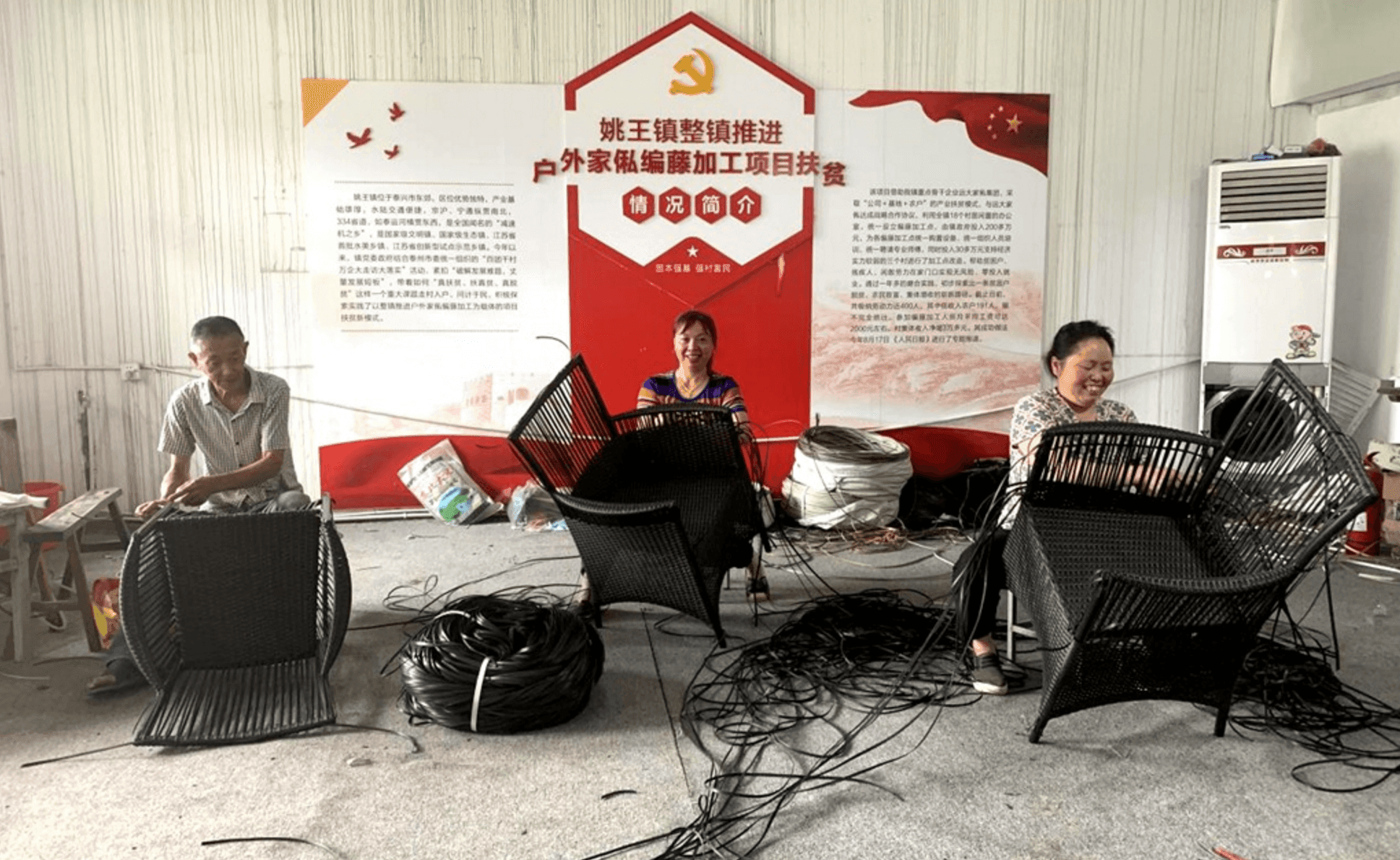 全力甩掉窮帽子 近年來(lái),大量村民從繁重的農(nóng)活中解放出來(lái),青壯勞力基本上在外或者在本地企業(yè)就業(yè),剩下一群年齡大、身體不好的村民。為了解決他們的就業(yè)難題,周宏多方調(diào)研,尋找適合的項(xiàng)目。2015年,在鎮(zhèn)黨委政府的大力扶持下,自籌資金20多萬(wàn)元,蓋起了500多平米的創(chuàng)業(yè)富民點(diǎn)和殘疾人輔助性就業(yè)點(diǎn),引進(jìn)了戶外編藤加工和輕紡產(chǎn)品包裝項(xiàng)目。村干部帶頭參加培訓(xùn),再教會(huì)其他人。全村近50名閑散勞動(dòng)力,包括有一定勞動(dòng)能力的殘疾人,均在加工點(diǎn)找到適合自己的工作崗位,月均收入千元以上。