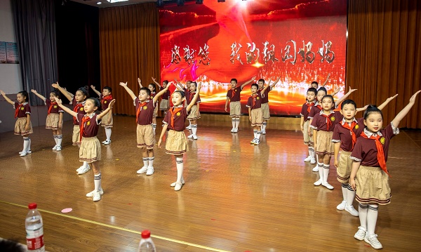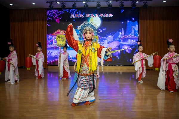 朗誦《祖國媽媽》《我的祖國》《海棠禮贊》《櫻花依然盛開》《我驕傲,我是中國人》,情景劇視頻《抗疫阻擊戰(zhàn)之歌》,京劇音詩畫《滿江紅》,聲情并茂的演繹,鏗鏘的誦讀,仿佛帶領(lǐng)大家一起穿越時空隧道,徜徉在經(jīng)典詩歌之中;京劇片段《賣水》《鍘美案》《貴妃醉酒》《霸王別姬》《定軍山》《智斗》《穆桂英掛帥》《奔襲》,其唱腔運(yùn)氣酣暢,韻味醇厚,讓現(xiàn)場與會嘉賓體味了傳統(tǒng)戲曲神韻。經(jīng)典與音樂融合,詩文與舞蹈相伴,孩子們將一個個經(jīng)典之作完美演繹,給觀眾帶來了一次視覺和聽覺的沖擊;顒蝇F(xiàn)場高潮迭起、掌聲不斷。