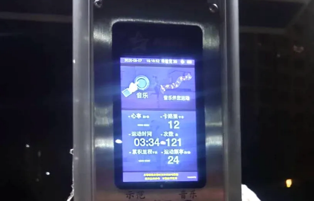 與普通的健身器材不同,當(dāng)開始鍛煉時(shí),器材上的智能顯示屏?xí)詣?dòng)點(diǎn)亮,實(shí)時(shí)顯示運(yùn)動(dòng)數(shù)據(jù)。運(yùn)動(dòng)過程中也可以按鍵實(shí)現(xiàn)相應(yīng)功能的切換,還可以選擇不同的音樂。