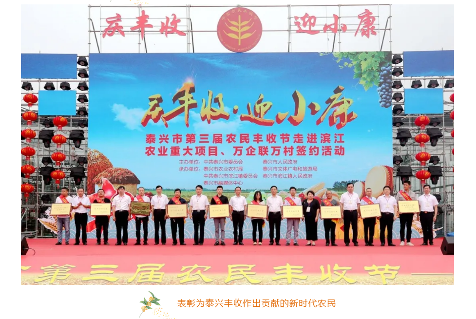 五谷豐登唱金秋,載歌載舞慶豐收 今年以來(lái),泰興市積極克服疫情影響,加快補(bǔ)齊高水平全面小康“三農(nóng)”領(lǐng)域突出短板,持續(xù)抓好農(nóng)業(yè)穩(wěn)產(chǎn)保供和農(nóng)民增收,農(nóng)業(yè)農(nóng)村各項(xiàng)工作穩(wěn)步推進(jìn),糧食生產(chǎn)穩(wěn)定度、生豬存欄量、農(nóng)業(yè)農(nóng)村重大項(xiàng)目、萬(wàn)企聯(lián)萬(wàn)村等重點(diǎn)工作中期考核居泰州第一,農(nóng)村居民人均可支配收入達(dá)11955元、同比增長(zhǎng)2.7%,所有經(jīng)濟(jì)薄弱村和低收入農(nóng)戶實(shí)現(xiàn)穩(wěn)定脫貧。 今年好收成,未來(lái)更期許