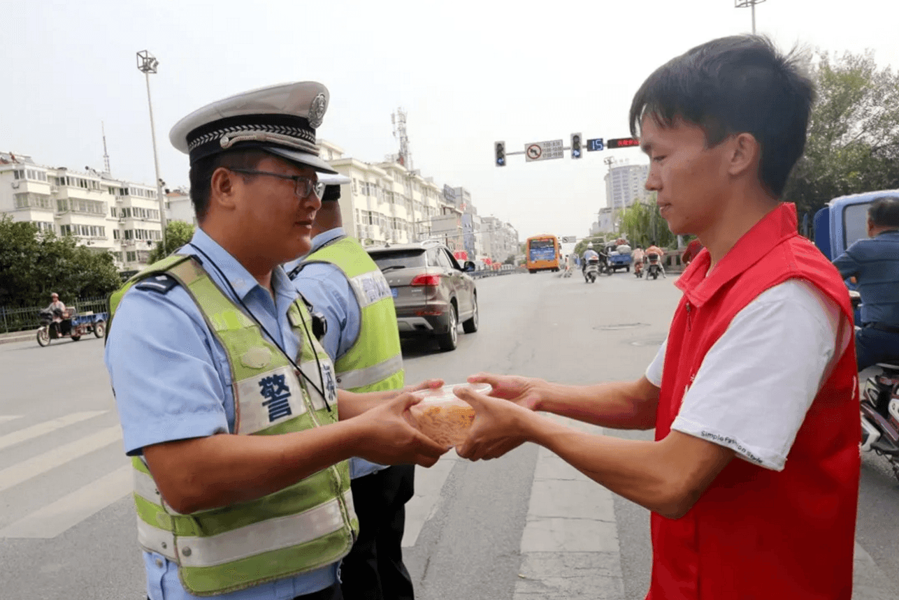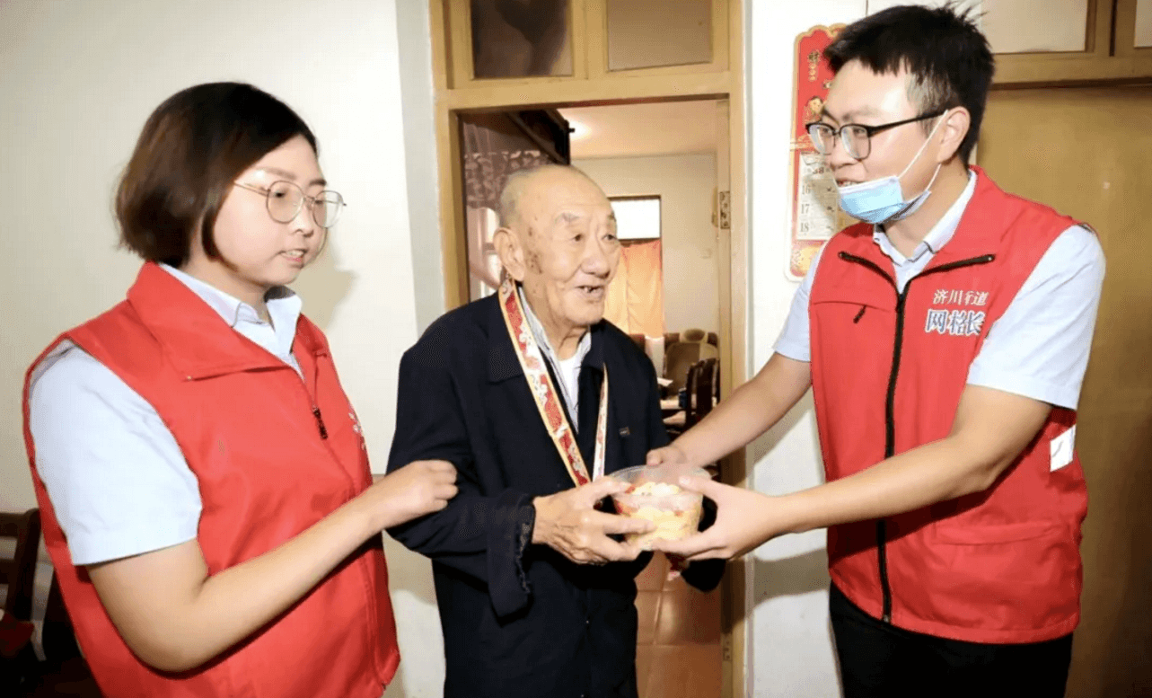 除了現(xiàn)場(chǎng)吃“團(tuán)圓面”,社區(qū)志愿者們,將“長壽面”送到抗戰(zhàn)老兵家中,將“奮進(jìn)面”送給執(zhí)勤交警,以表達(dá)敬意,共迎國慶。