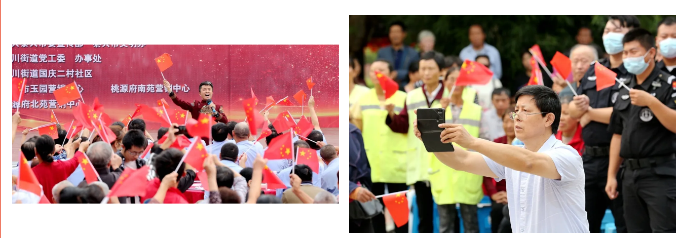 臺(tái)下是香噴噴的“國慶面”,臺(tái)上是對(duì)祖國的深情表白,在場(chǎng)市民齊唱愛國歌曲,為祖國送上真摯的祝福。