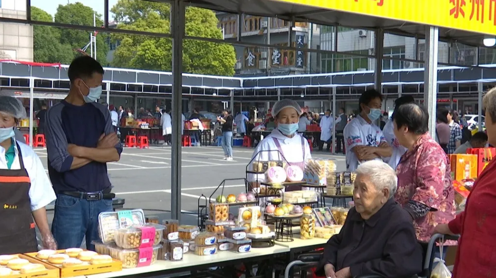在黃橋燒餅展示展銷現(xiàn)場,30家黃橋燒餅制作企業(yè)齊聚一堂,香飄四溢的黃橋燒餅引來眾多食客競相品嘗。