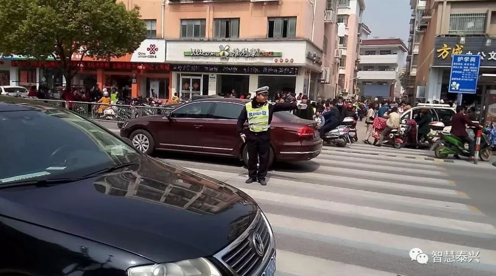 在泰師附小護(hù)學(xué)崗他每天提前到崗,到崗后他總是不停地吹哨、不停地指揮、不停地疏導(dǎo),對違法停車、機(jī)非不分、逆向行駛等交通違法行為進(jìn)行宣傳、勸阻,指揮學(xué)生有序地通過路口。